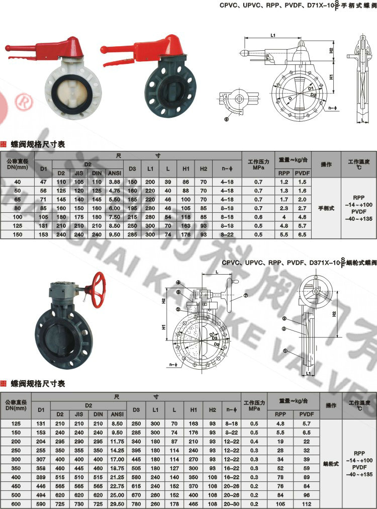 4、CPVC塑料蝶閥主要根據剖面、長度、高度、外形等作出說明。