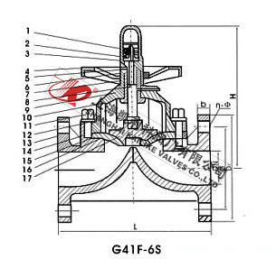 G41F-6S型CPCV隔膜閥、CPVC塑料隔膜閥適用于腐蝕介質的輸送及截流、流量的調節,根據材質不同使用溫度-14℃~100℃、-40℃~140℃。過流部件C采用RPP或PVDF注塑件組裝而成,耐腐蝕性能優良,操作方便,體量輕,能代替不銹鋼閥門。密封件膜片采用F46或PFA制造,耐折次數≥1200次,耐腐蝕性能與F4相當。
