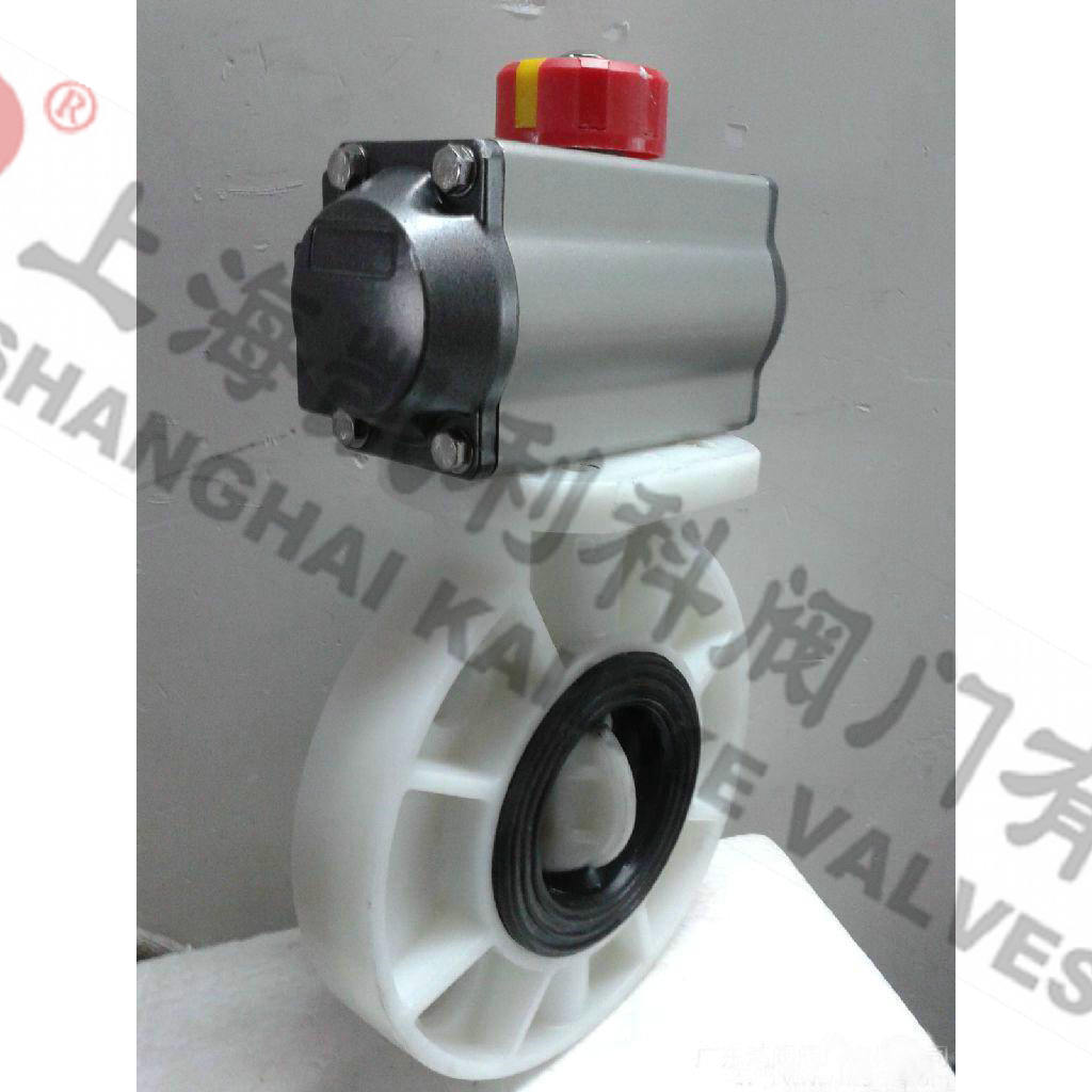 PVC氣動蝶閥適用于帶腐蝕性介質的輸送過程的截流,根據不同材質溫度-14℃~100℃、-40℃~140℃。耐腐性能優異,延長使用壽命。轉動靈活、使用方便。泄漏點少,強度高,裝拆方便。含硬顆粒液體容易使球表面劃傷。全部零件采用FRPP、PVDF、CPVC、UPVC、