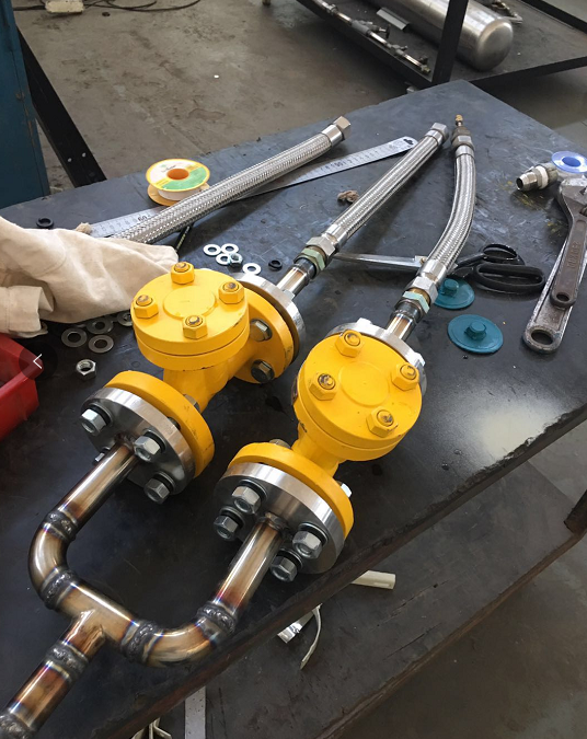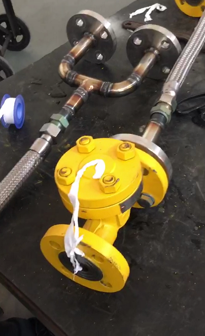 我們可以從圖中看出這個氨用止回閥漏氣漏得很嚴重,心塞,自己的產品怎么這么不管用,感覺找一下解決方案,圖中發現了氨用止回閥是朝下的,不對勁啊,問題馬上就看出來了,立即給客戶打電話過去,氨用止回閥中部法蘭應該朝上。
