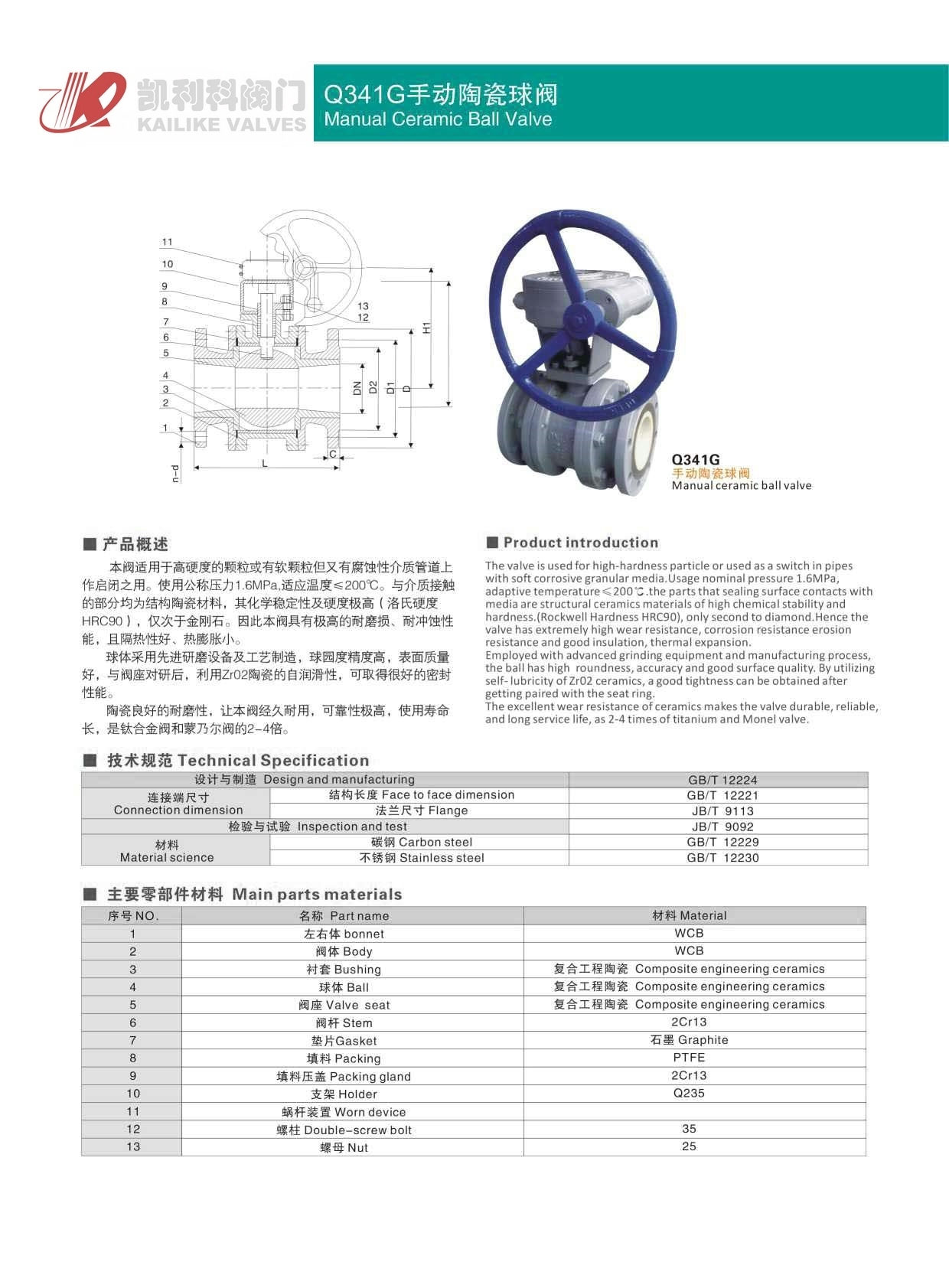 陶瓷球閥本閥適用于高硬度的顆粒或有軟顆粒但又有腐蝕性介質(zhì)管道上作啟閉之用。使用公稱壓力1.6MPa,適應(yīng)溫度≤200℃。與介質(zhì)接觸的部分均為結(jié)構(gòu)陶瓷材料,其化學穩(wěn)定性及硬度極高(洛氏硬度HRC90),僅次于金剛石。因此本閥具有極高的耐磨損、耐沖蝕性能,且隔熱性好、熱膨脹小。